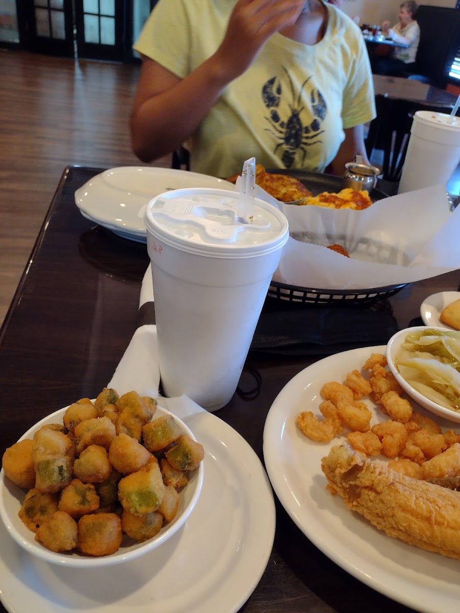 The menu here is packed with familiar favorites. Seafood lovers can dive into golden-fried flounder plates, crab cakes, or a classic shrimp basket, while land-based eaters can’t go wrong with a chicken fried steak or their meatloaf dinner. Breakfast is served all day, and their pancakes, omelets, and biscuit sandwiches are worth waking up for—no matter the time. It’s also a great spot for a quick bite, with generous portions and food that hits all the right notes of nostalgia.